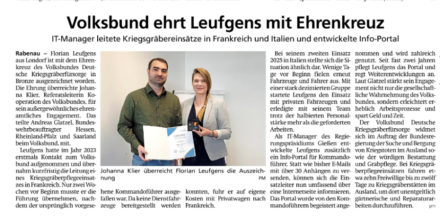 Herzlichen Glückwunsch zur Verleihung des Ehrenkreuzes durch den Volksbund.